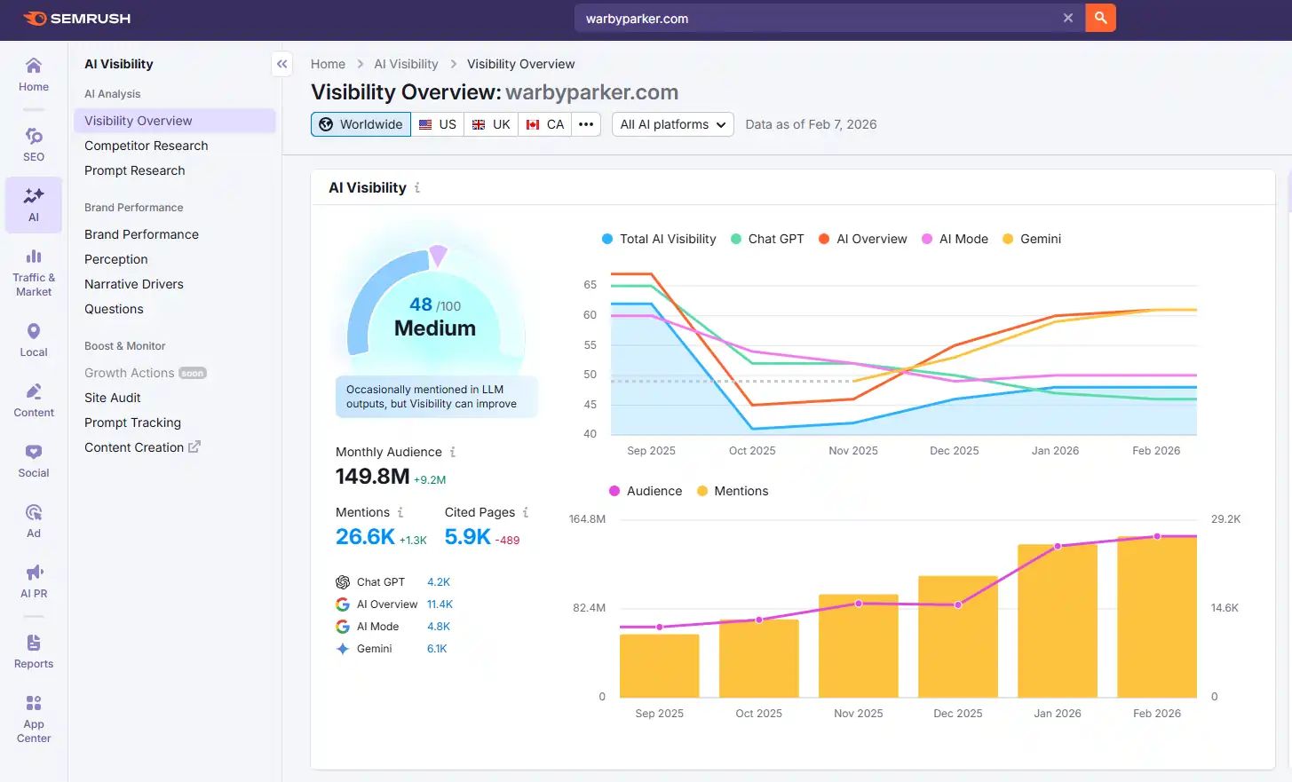 AI Visibility Overview by Semrush